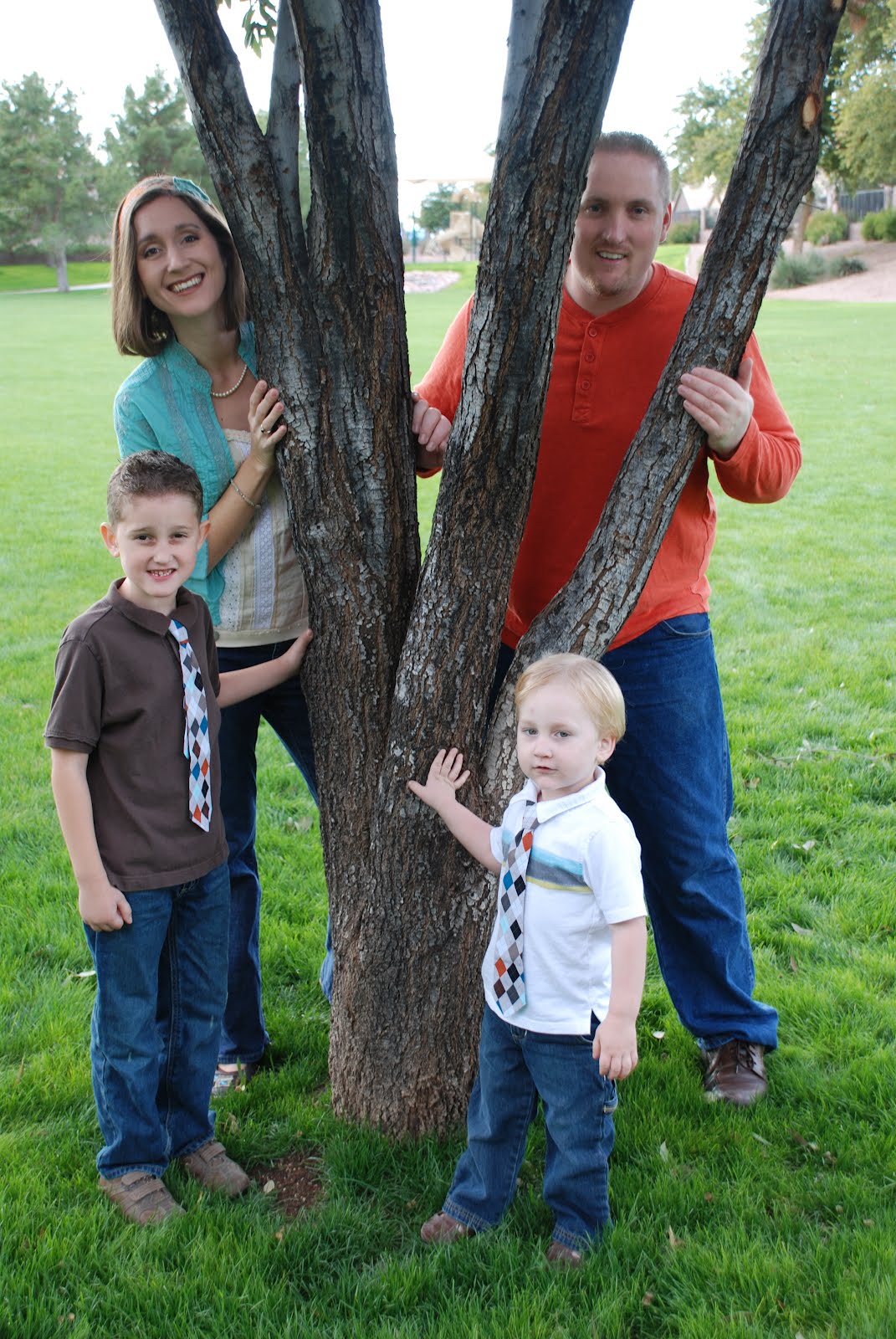 I saw the adorable ties the boys are wearing at a local craft fair and made them the jumping-off point for our pictures this year. I decided on a turquoise, orange and brown color scheme. Blue jeans are casual...and we all had pairs that looked good together!